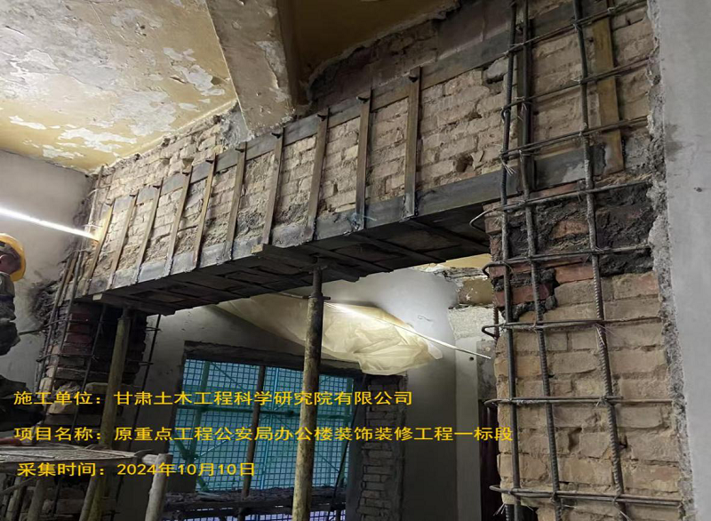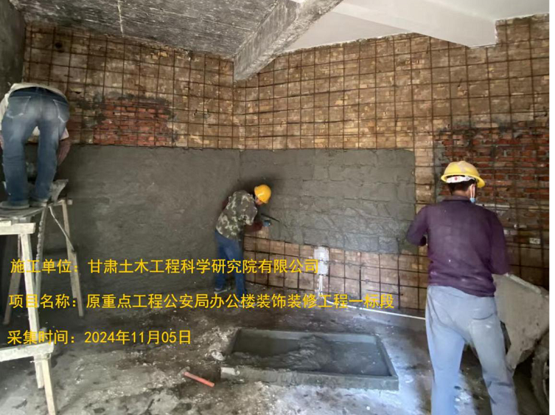 因運行安全需要,2024年9月,公司承攬了原重點工程公安局辦公樓裝飾裝修工程一標段(結構加固設計與施工),作業(yè)內(nèi)容是對建筑物現(xiàn)澆鋼筋混凝土梁、板、柱、墻體等進行結構加固,2025年7月4日整體竣工。本項目位于甘肅省蘭州市城關區(qū)民主西路11號,始建于1960年,建筑物于1980年進行過抗震加固。該建筑為地上五層磚砌體結構,建筑物承重墻采用燒結普通磚砌筑,建筑物軸線總長為67.8m,總寬為12.2m,一層至四層層高均為3.2m,五層層高為4.2m,建筑高度為17.6m,總建筑面積約3454.47㎡。